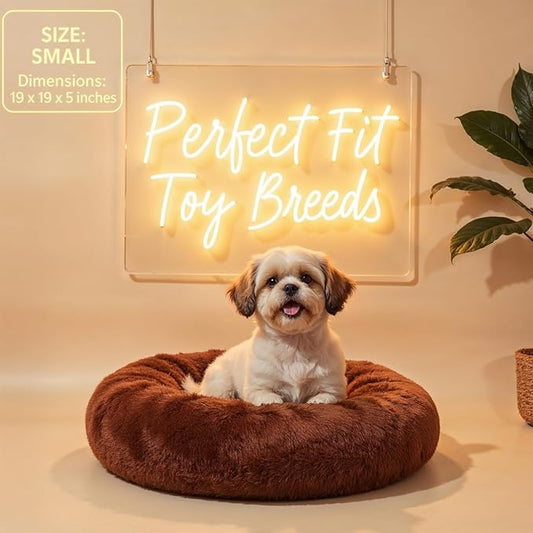 Donut Bed for Small Dogs & Cats | Ultra-Soft Brown Faux Fur