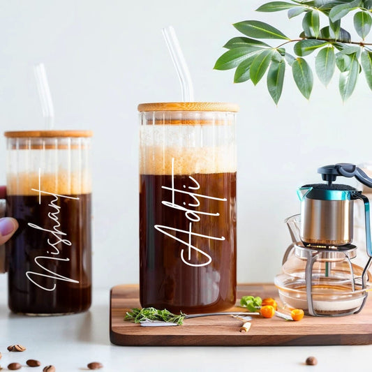 Fluted Can Glass Tumbler with Bamboo Lid & Glass Straw – 420ml Premium Drinkware